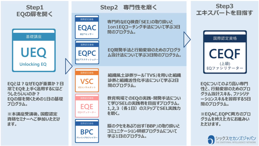 Unlocking EQ受講修了後、各認定資格セミナーへお進みいただけます。